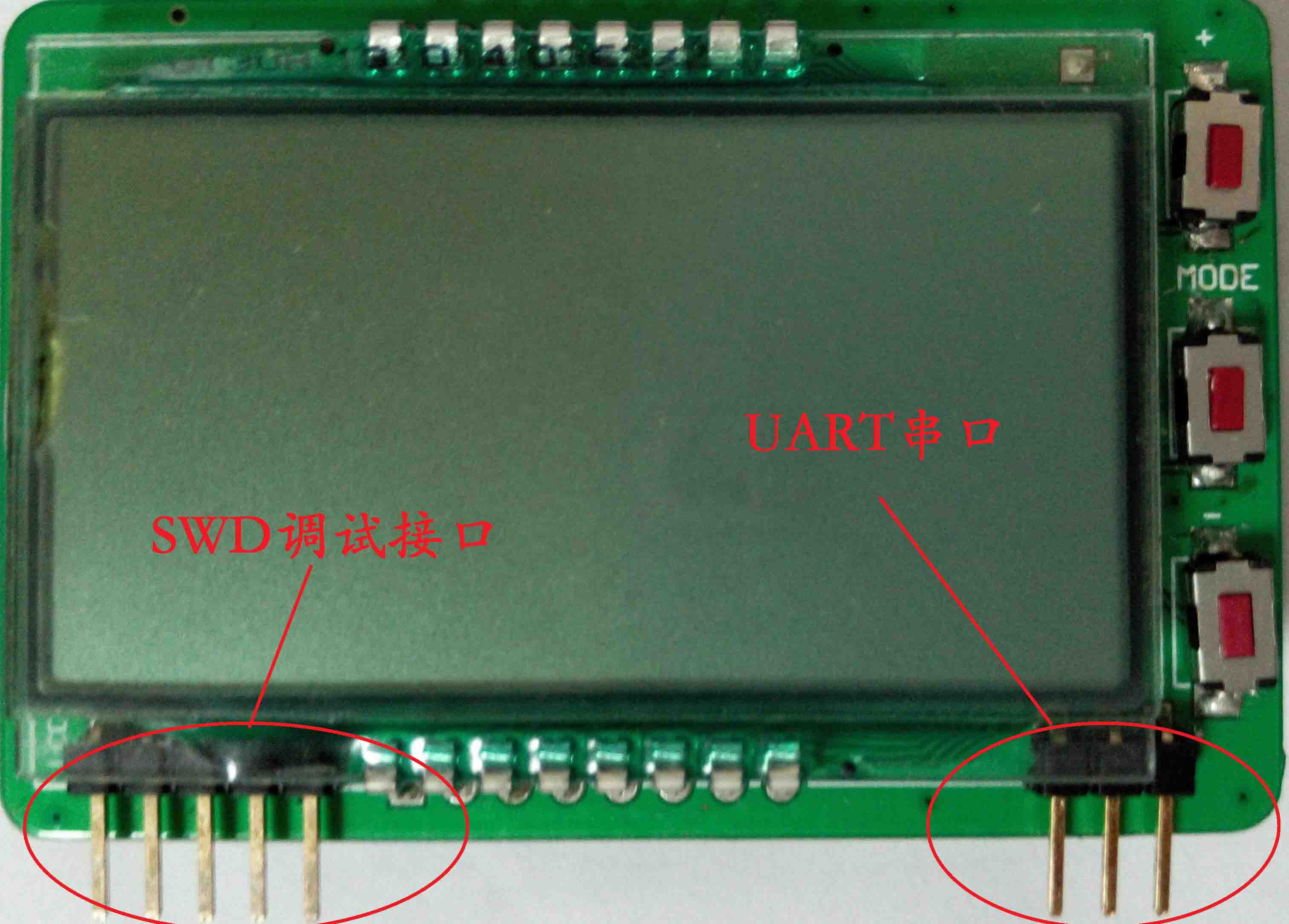 为了实现监控计步器的工作状态,确保计步器正常工作,同时为了直观的快捷的观测传感器数据,本设计增加了UART接口作为系统的调试接口。可以在线调试仿真和用串口打印信息,并以写好驱动可直接调用printf函数。如图所示为SWD接口与UART接口。