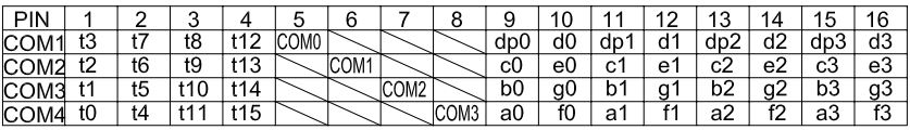 段码LCD屏为1/4DUTY,1/3BIAS,驱动电压为3.0V。工程中配的驱动文件能驱动任何一段,并配有详细注释。其段码如图所示。