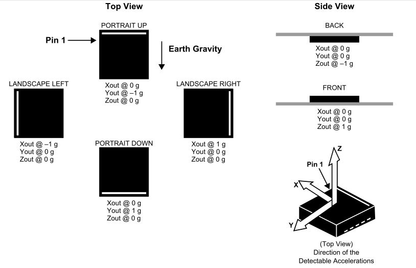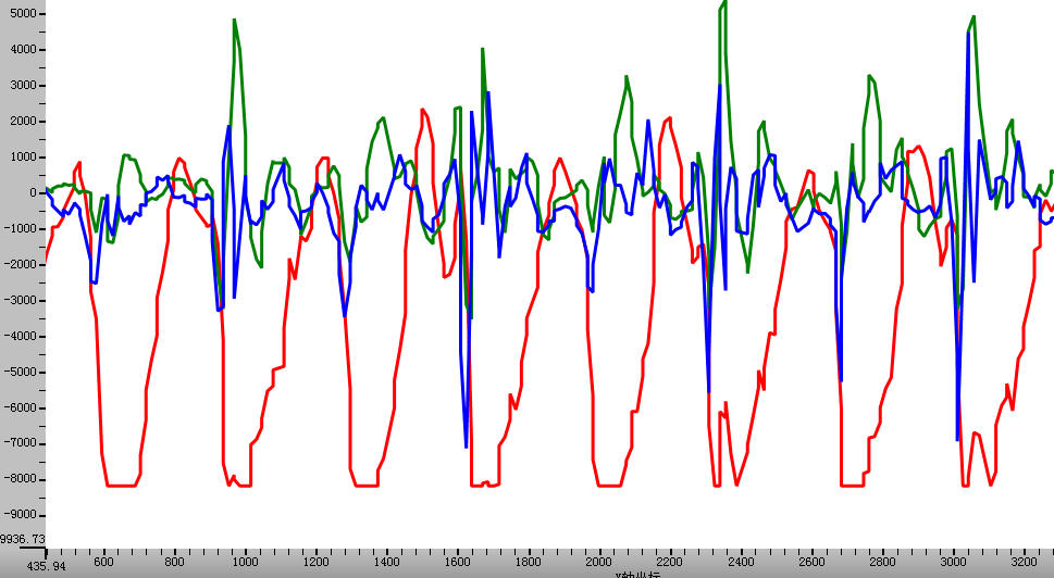显而易见,无论用户如何携带计步器,至少有一个轴具有相对较大的周期性加速度变化。因此只要做好峰值检测和设定好加速度阈值即可判断目标是否在跑动,如图是MMA8652Q在不同姿态X、Y、Z重力输出。综上,可以实现灵敏度可控。