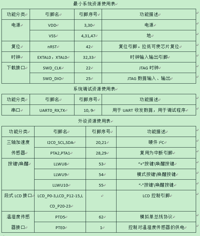 为尽可能的降低功耗,可只引出使用到的一些端口,未使用的资源一律不引出。对于功耗高的模块,可通过一个IO口控制P沟道MOS管的通断,从而控制对模块的供电。为方便调试程序,预留SWD和UART接口。